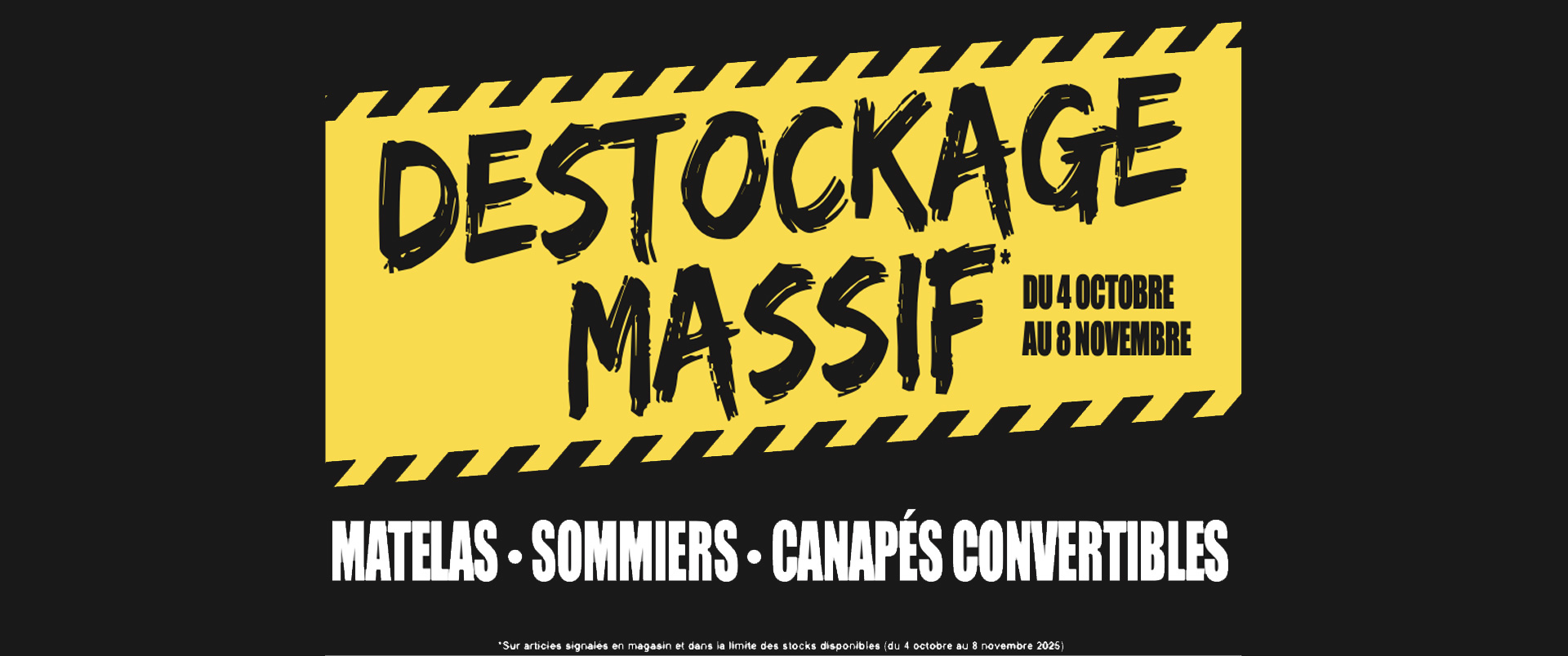 Avec un large choix de produits complémentaires, têtes de lit, sommiers, linge de lit, draps, couettes et oreillers. Dans ce rayon vous trouverez des marques comme Pyrenex, Moshy, Lestra ou encore Blanc des Vosges, et surtout à des prix attractifs.